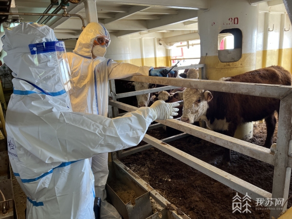 據(jù)了解,該輪從新西蘭納皮爾港出發(fā),歷經(jīng)15天到達(dá)鹽城大豐港,船上運(yùn)載著荷斯坦、赫里福德、安格斯等種牛5240頭,總價(jià)值超1億元。由于活牛的特殊性,滯留港口時(shí)間越長(zhǎng),就越容易造成活牛死亡,需要在最短時(shí)間內(nèi)完成卸載。在接到“海洋使者”輪靠泊申請(qǐng)后,鹽城出入境邊防檢查站就立即著手研究制定特殊通關(guān)方案,第一時(shí)間與聯(lián)檢部門和代理公司取得聯(lián)系,及時(shí)掌握船舶、船員、載運(yùn)種牛及疫情防控等相關(guān)情況。