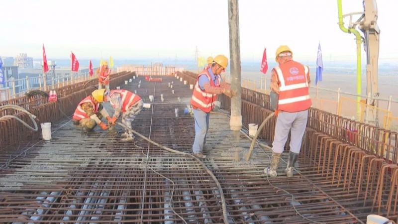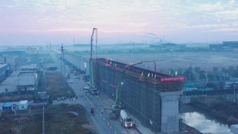 “我們承建的大豐港特大橋全長17.949公里,目前項目首個支架現(xiàn)澆梁一次性澆筑已完成,連續(xù)梁澆筑的完成標(biāo)志著大豐港鐵路支線施工建設(shè)進入新的階段。”大豐港鐵路支線工程3標(biāo)經(jīng)理部現(xiàn)場負責(zé)人陳甫軍告訴記者。
