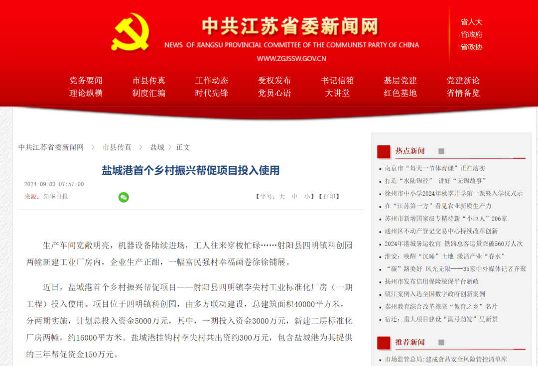 鏈接:踐行國企擔當!鹽城港首個鄉村振興幫促項目投入使用