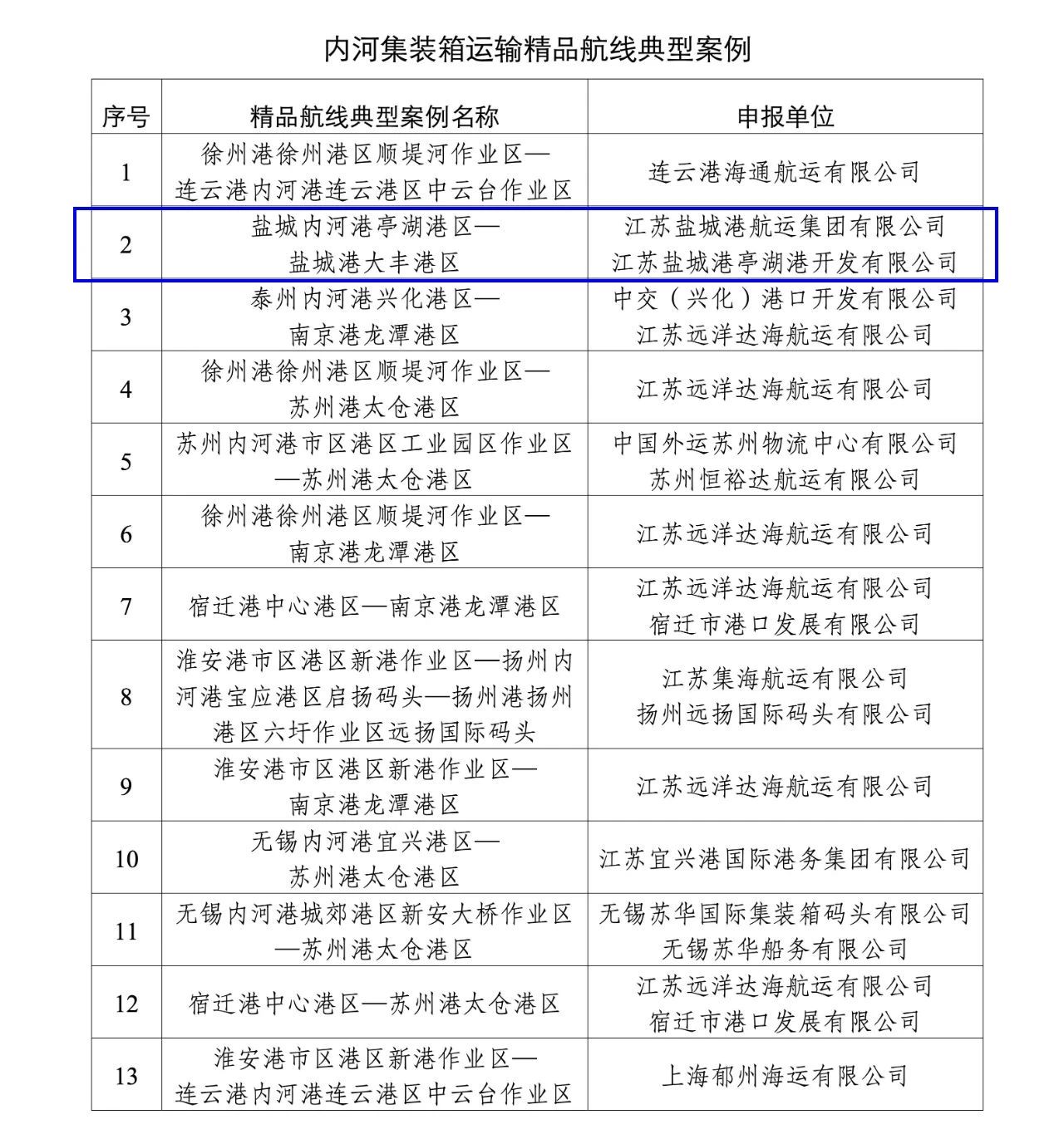內河集裝箱綠色示范航線(大豐港區(qū)—亭湖港區(qū))