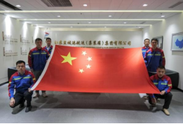 右圖:“申豐之春”班組成員與國旗合影