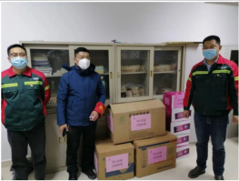 左圖:亭湖港區(qū)捐獻(xiàn)地方政府抗疫物資