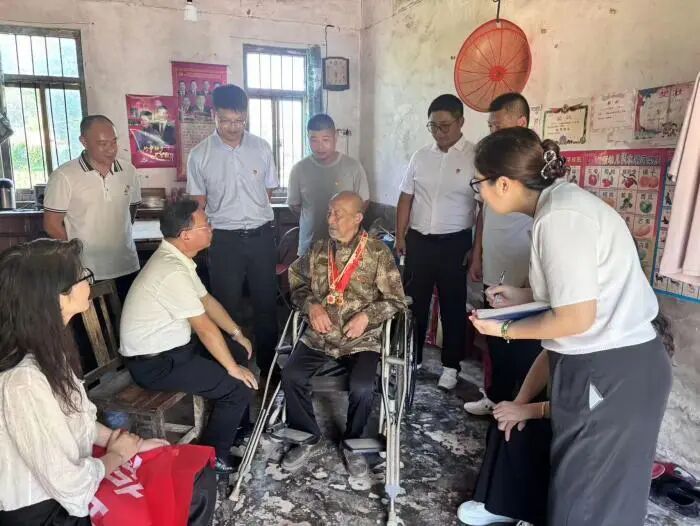 下午,全體黨員前往93歲老兵周立忠家中開展走訪活動。走進屋中,老人身著整潔舊軍裝、佩戴勛章,雖已年過九旬,卻依舊精神矍鑠、身姿挺拔,回憶起當年戰(zhàn)斗經(jīng)歷時,原本平和的眼神瞬間閃爍出堅定光芒,仿佛重回烽火連天的歲月。“我是17歲當?shù)谋菚r候條件苦啊,吃不飽、穿不暖,但大家心里都憋著一股勁,要把敵人趕出去!”老兵用樸實的語言,將大家?guī)Щ啬莻€艱苦卓絕的歲月,每個細節(jié)都飽含著對祖國的赤誠和熱愛。當談及曾參與的渡江戰(zhàn)役時,老人更是打開了話匣子,從戰(zhàn)前的緊張準備,到渡江時的驚險瞬間,再到戰(zhàn)友間的相互扶持,將一段段驚心動魄的往事娓娓道來。黨員同志們圍坐在老人身邊,聽得格外專注,不時輕聲追問細節(jié)、積極交流互動,大家被他們的英勇事跡和愛國精神所深深打動,更深刻理解了“英雄”二字的背后,是舍生忘死的擔(dān)當,是刻在骨子里的愛國赤忱,更是激勵后人奮勇前行的精神力量。