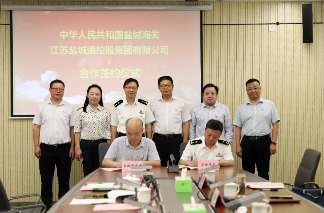 9月15日,集團(tuán)與鹽城海關(guān)簽訂意向性戰(zhàn)略合作協(xié)議。鹽城海關(guān)黨委書記、關(guān)長胡正良,集團(tuán)黨委書記、董事長、總經(jīng)理周正雄出席簽約儀式并鑒簽。市口岸辦副主任陳國亮,集團(tuán)黨委委員、紀(jì)委書記周旭東等參加活動(dòng)。鹽城海關(guān)黨委委員、副關(guān)長李健和集團(tuán)黨委委員、董事、副總經(jīng)理丁安廣進(jìn)行現(xiàn)場簽約。
