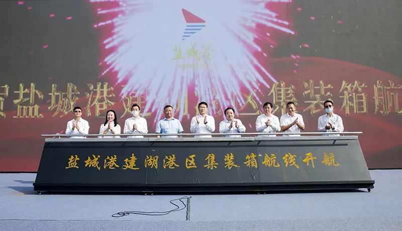 9月17日,鹽城港建湖港區(qū)集裝箱班輪航線正式開航。建湖縣委書記祁從峰,集團黨委書記、董事長、總經(jīng)理周正雄出席活動并分別致辭。建湖縣委常委、縣委辦主任孫振宏,集團黨委委員、紀委書記周旭東等參加。建湖縣副縣長唐坤和集團黨委委員、董事、副總經(jīng)理陳正華代表雙方簽訂戰(zhàn)略協(xié)議。