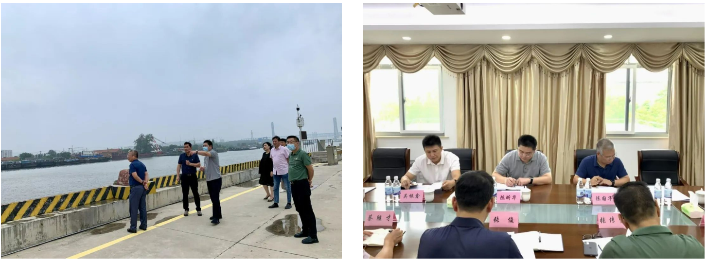 7月20日,陸港集團總經理陳昕華同志帶隊在新洋港水上服務區調研工作。