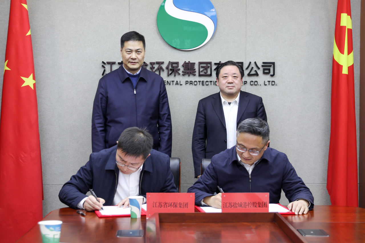 周正雄對此次成功簽約表示祝賀,并介紹了鹽城港相關情況。他說,集團自成立以來,積極搶抓發展機遇,不斷完善基礎設施建設,提升港口發展能級,實現了“三年三大步”跨越式發展。集團高度重視綠色生態發展,在新能源應用、岸電推廣、船舶污染物處置等方面持續發力,堅決扛起生態環保責任,致力于生態和諧、資源節約、環境友好的綠色生態港口建設。省環保集團在環境治理領域具有成熟的經驗積累和技術儲備,雙方發展理念高度契合,合作前景廣闊。希望省環保集團繼續關心和支持鹽城港的發展,聚焦規劃編制、項目推進、標準化體系制定等方面,充分發揮技術、資金、政策和人才優勢,推動資源嫁接、優勢互補,圍繞“五新示范港”建設深入合作,全力打造綠色發展示范典型,實現港口建設與生態保護協同發展,共同為譜寫中國式現代化江蘇新篇章貢獻力量。