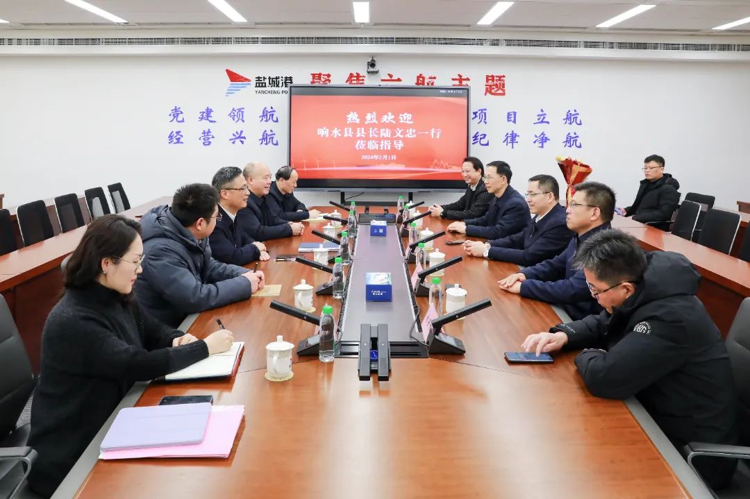 2月1日,響水縣縣長陸文忠率隊拜訪鹽城港集團,雙方就深化合作進行交流洽談,集團黨委副書記、董事、總經理陸帥接待陸文忠一行。響水縣委常委、縣政府常務副縣長周飛,集團黨委委員、副總經理丁安廣等參加。