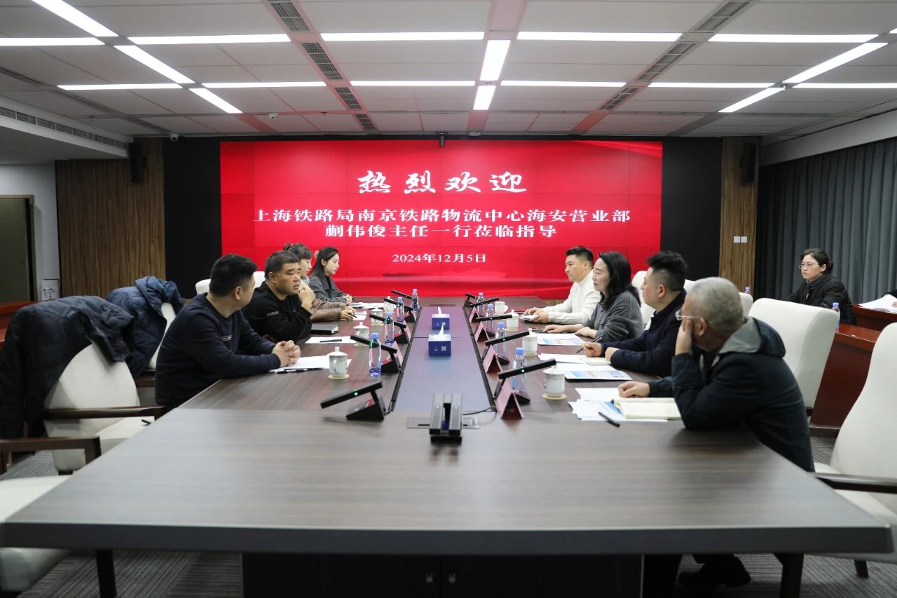 12月5日上午,上海鐵路局南京鐵路物流中心海安營業(yè)部蒯偉俊主任一行拜訪我集團(tuán),就海鐵聯(lián)運、鐵水聯(lián)運等事宜進(jìn)行深入交流。集團(tuán)副總經(jīng)理袁欣接待。