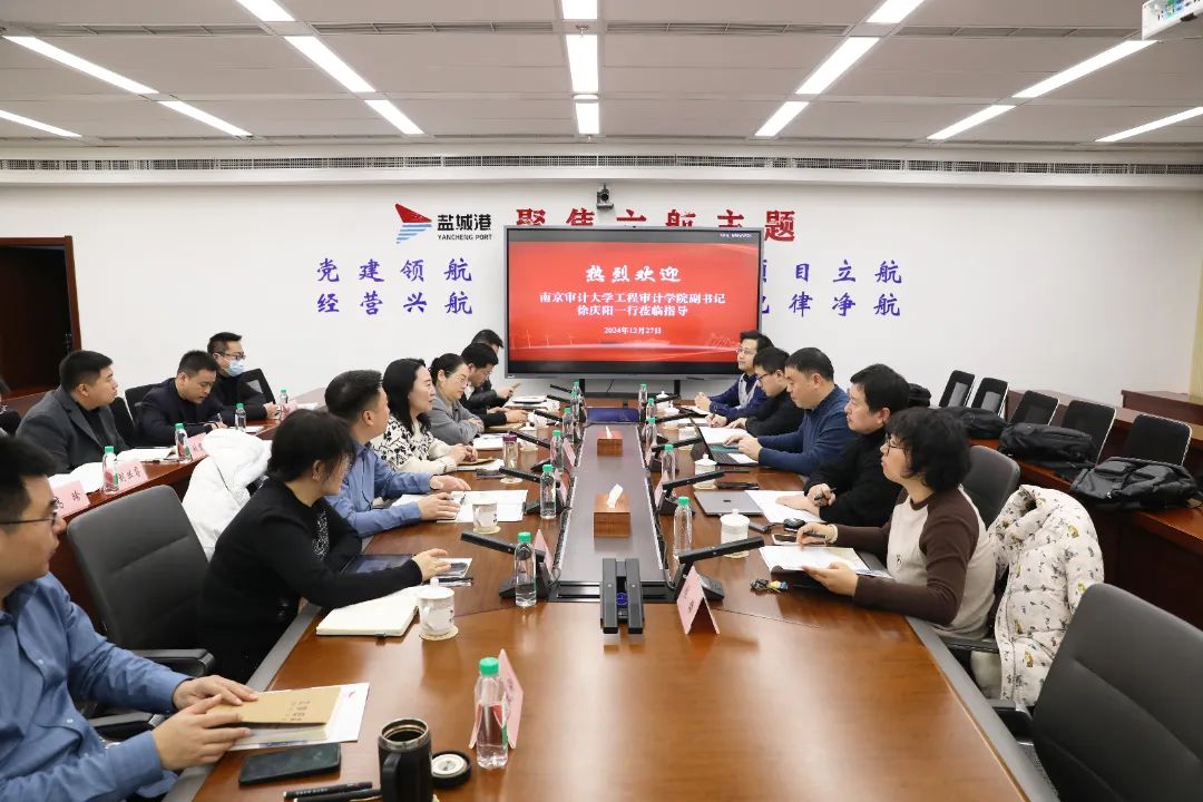 袁欣對徐慶陽一行的到來表示歡迎,并介紹了鹽城港相關情況。她說,自集團成立以來,集團高度重視依法治企、合規管理工作,始終將審計工作擺在重要位置,扎實推動“五大監督”“雙體檢”等創新舉措,不斷提高風險防范能力,著力提升合規管理水平。當前,鹽城港充分發揮審計工作“找問題、明方向”作用,對重大項目開展“回頭看”,確保手續齊全、流程規范,依法合規推進項目建設。同時,集團聚焦人才引進,不斷擴充審計人才庫,為未來健康可持續發展提供堅實人才支撐。南京審計大學作為審計類人才的智庫和搖籃,在人才培養等方面擁有專業的師資力量,懇請南京審計大學在財務、審計、法務、融資專業人才培養等方面給予鹽城港更多支持,為鹽城港一體化融合高質量發展注入新活力。