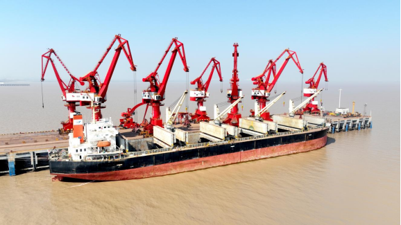 據悉,裝載近5萬噸鐵礦粉的“V.NOBLE”輪因航行途中受大風影響導致船期緊張,該輪貨物在大豐港區完成卸載后需緊急奔赴下一站,裝載國家“一帶一路”重點項目物資出口至科威特。在得知客戶面臨的棘手問題后,大豐港區秉承“客戶為中心”的理念,迅速行動,主動對接,提前了解貨物卸載屬性,規劃碼頭作業場地,時刻關注船舶動態信息,制定科學卸船方案。船舶靠泊后,作業人員立即響應,迅速調配生產資源,四臺門機與四臺裝載機火力全開,經過30小時的晝夜奮戰,順利完成卸船任務,比預計時間縮短了18小時,并刷新大豐港區通用碼頭鐵礦單船作業歷史最高紀錄,不僅為客戶爭取了寶貴時間,也保障了國家“一帶一路”重點項目順利推進。