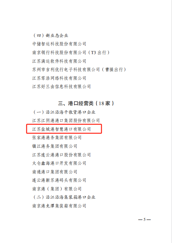 近日,江蘇省交通運輸廳公布了“2025年江蘇交通運輸重點培育企業”名單,鹽城港智慧港口公司入選,上榜港口經營類沿江沿海干散貨港口企業。