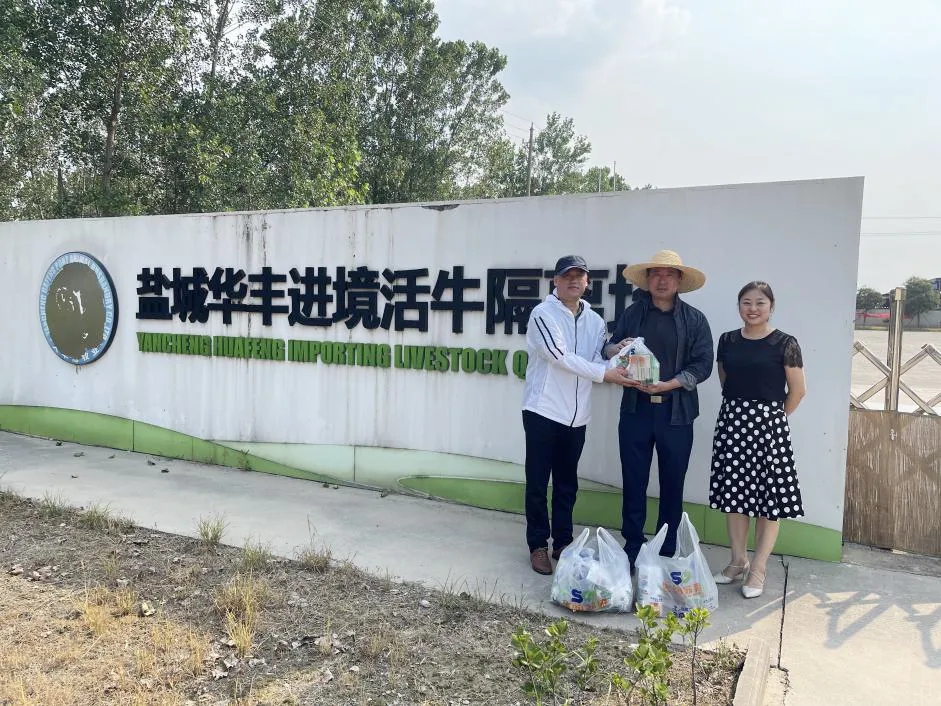 在大豐區華豐農場進境活牛隔離場,慰問組親切看望了正在值班值守的一線人員,對他們冒酷暑、戰高溫,堅守崗位,協調用水用電,保障進境活牛安全隔離付出的努力表示贊賞。7月6日,北京牧華源國際貿易有限公司4999澳大利亞荷斯坦進口活牛抵達華豐隔離場,將在這里進行為期45天檢疫隔離。為保證高溫高熱季節清潔水源充足,供應鏈科技集團多方協調消防車從外部運水,實行24小時領導帶班值守,保障了隔離場的日常用水需求。