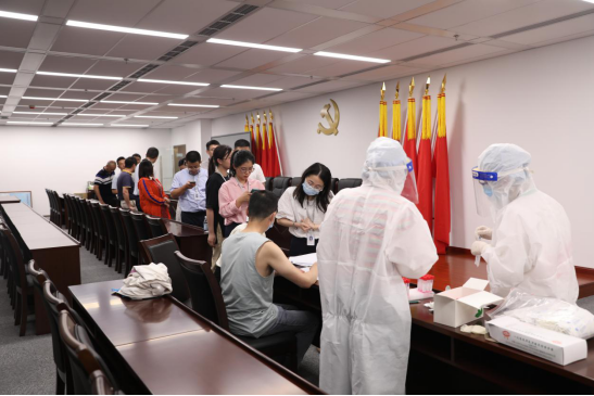 為進(jìn)一步強(qiáng)化,織密織牢集團(tuán)聯(lián)防聯(lián)控防疫網(wǎng)絡(luò),切實(shí)保障全體員工的健康安全。在100%實(shí)現(xiàn)新冠疫苗“應(yīng)種盡種”前提下,集團(tuán)積極與市疾控中心協(xié)調(diào)溝通,7月21日上午,邀請(qǐng)德賽堡醫(yī)院核酸檢測(cè)醫(yī)護(hù)團(tuán)隊(duì)來(lái)集團(tuán)為全體職工進(jìn)行核酸檢測(cè)工作。集團(tuán)上下統(tǒng)籌推進(jìn)疫情防控和生產(chǎn)經(jīng)營(yíng),提前安排部署,根據(jù)“到點(diǎn)、到時(shí)、到人”的要求,廣大干部職工積極配合,核算檢測(cè)現(xiàn)場(chǎng)秩序井然有序。