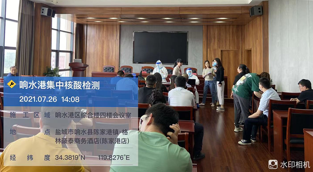 為提高工作效率,避免檢測人員聚集,下午2時開始,響水港區采取“分時分段分區域”方式,錯峰組織檢測取樣工作,截止下午4時,共計完成187人核酸檢測工作。