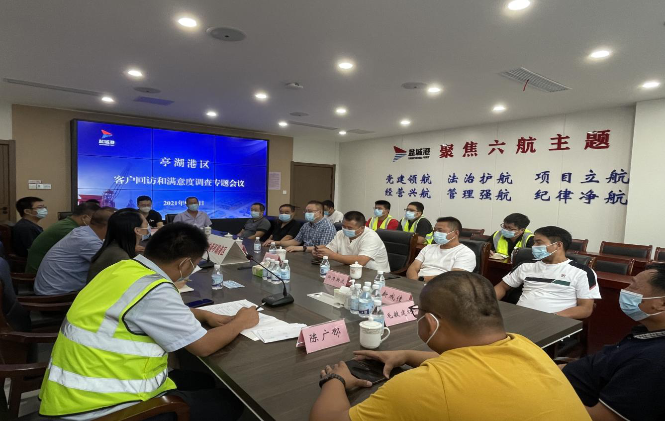 9月4日下午,鹽城港亭湖港區(qū)召開客戶回訪和滿意度調(diào)查專題會議。亭湖港區(qū)領導班子成員、部分企業(yè)家代表以及港區(qū)各部門牽頭負責同志參加會議。