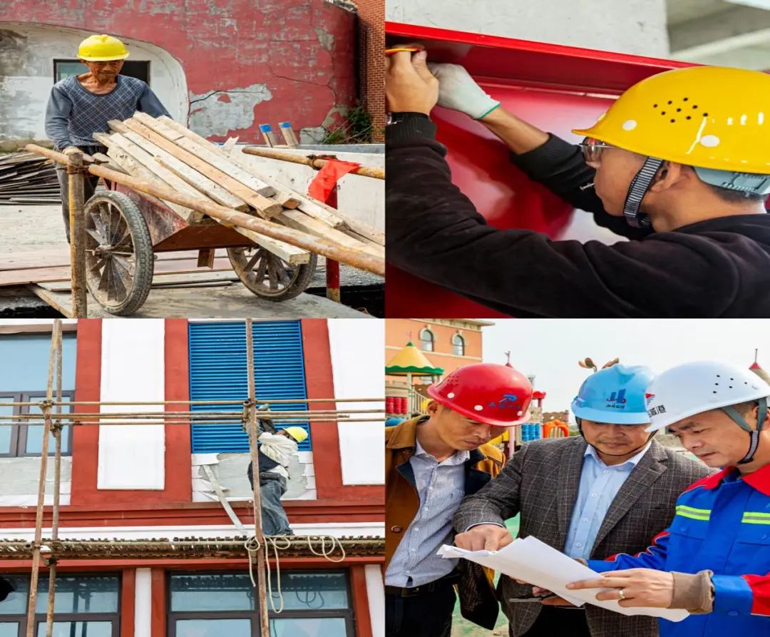 早晨7點,清冷的秋風夾雜著海浪的清新。在熱火朝天的大豐港區(qū)海盜王國施工現(xiàn)場,“轟轟”的機器作業(yè)聲與“釘釘”的鋼筋碰撞聲不絕于耳……工人們安全帽下的頭發(fā)早已被汗水浸濕,身上的衣服更是可以擰出水來。