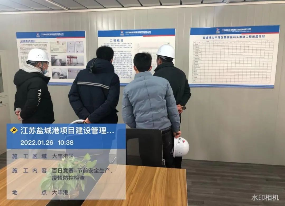 1月26日上午,項目公司分管安全領(lǐng)導(dǎo)及相關(guān)職能部門在大豐港區(qū)集裝箱堆場項目以及集中隔離點項目通過實地檢查、聽取匯報等方式開展風險隱患排查工作,重點檢查了臨時用電、腳手架搭設(shè)、冬季防火防凍、材料堆放、疫情防控等易存在安全隱患部位的安全管理與安全防護措施的落實情況。從檢查結(jié)果看,總體上各項目部對安全生產(chǎn)工作高度重視,安全生產(chǎn)責任制度落實、任務(wù)明確、措施得力。