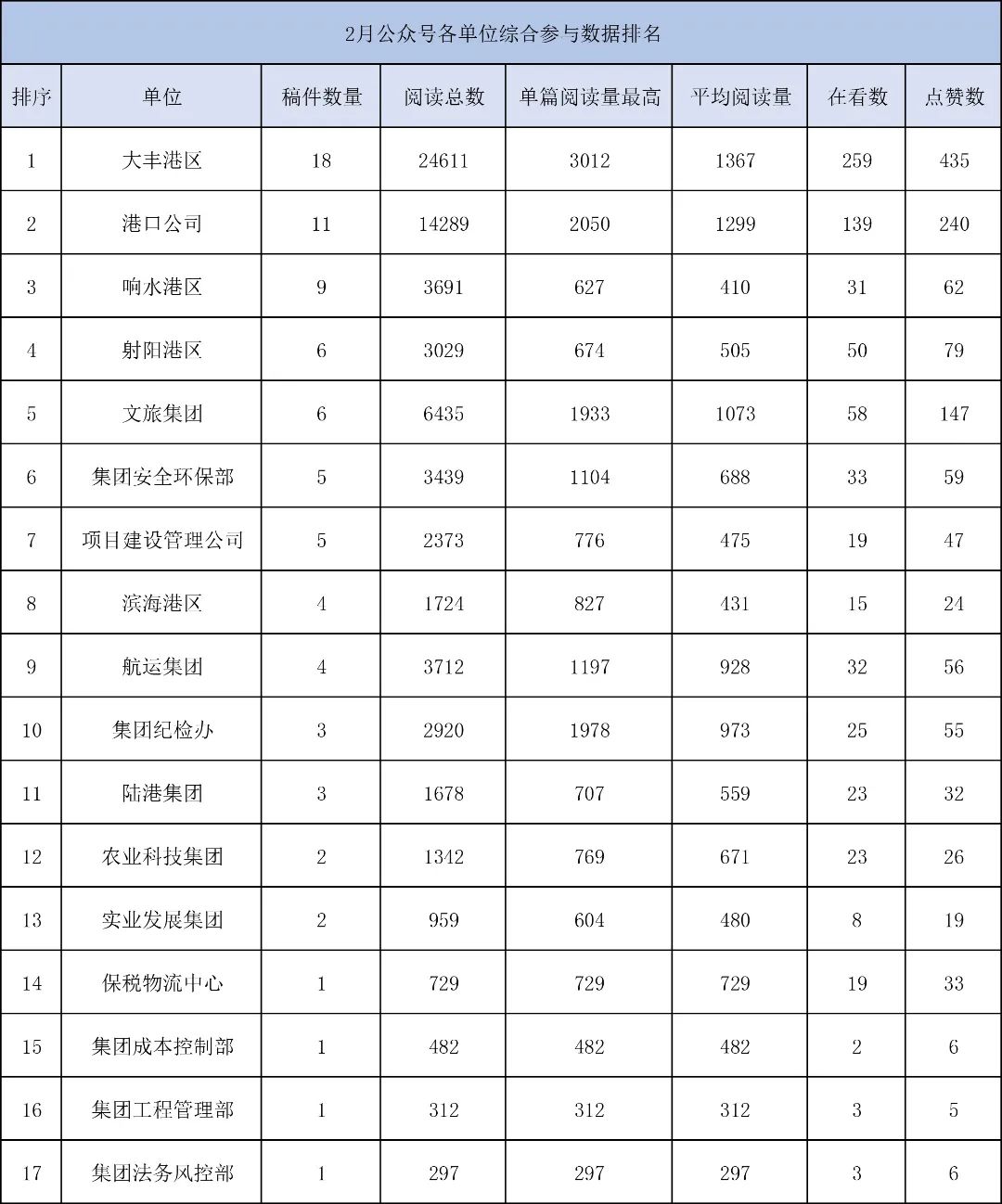 2月榜單,鹽城港集團(tuán)公眾號“前浪”表現(xiàn)可圈可點,“后浪”蓄勢待發(fā)。這個2月,是誰遙遙領(lǐng)先?誰又在奮起直追?請看2月榜單!