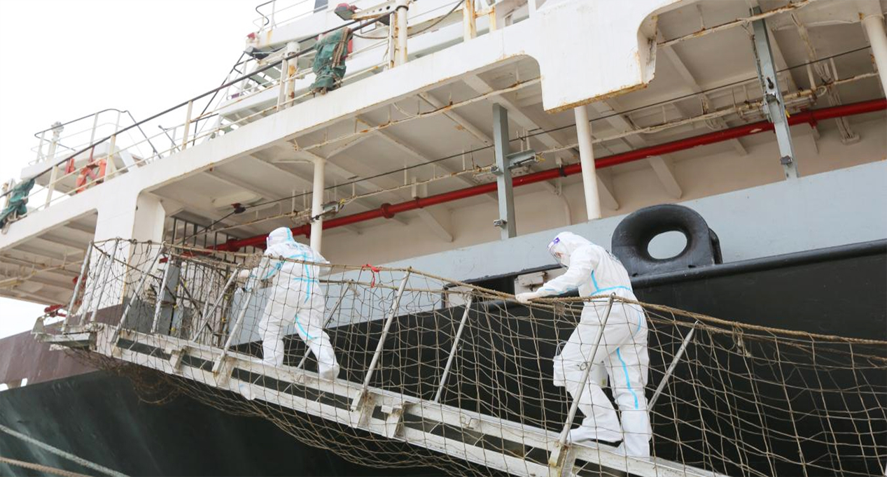 在面對嚴峻復雜的疫情形勢下,濱海港區高度重視外貿船舶入港作業流程規范化管控,推行“四個一”的外貿船舶作業規范,實現“一船一方案”“一船一布置”“一船一總結”“一船一檔案”,對每艘外貿船作業流程進行綜合風險研判,確定船舶裝卸方案、進行人員定崗定責、明確關鍵部位和重點環節負責人,設置應急程序,全力保障防疫保障物資充沛,確保安全高效地完成外貿船舶作業,實現疫情防控、生產經營“兩手抓、兩手硬”。