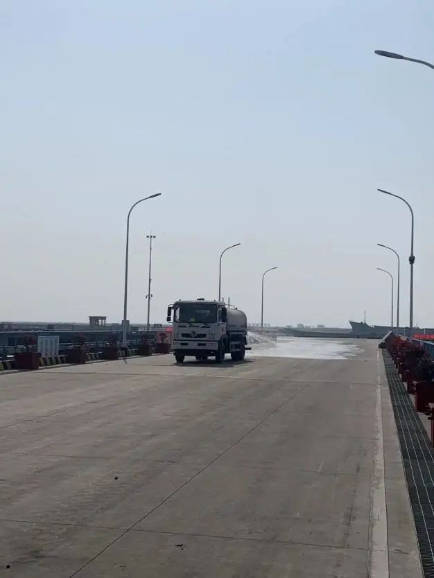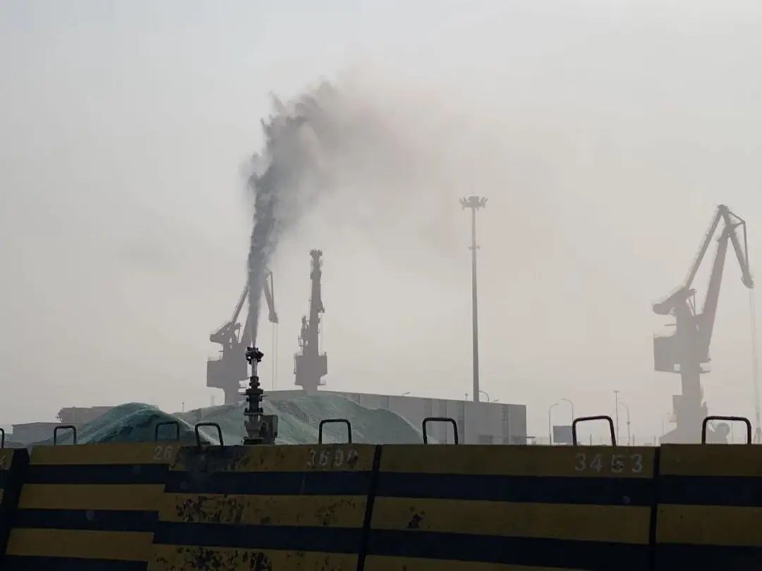 響水港區堆場建設有5套粉塵檢測系統,60個場地噴淋設施,定時對貨堆進行噴淋降塵。為規范公司日常管理,制定了《生產性粉塵綜合治理制度》,為堆場貨物進行百分百苫蓋,并通過碼頭面、堆場、道路清掃及灑水等措施減少揚塵。