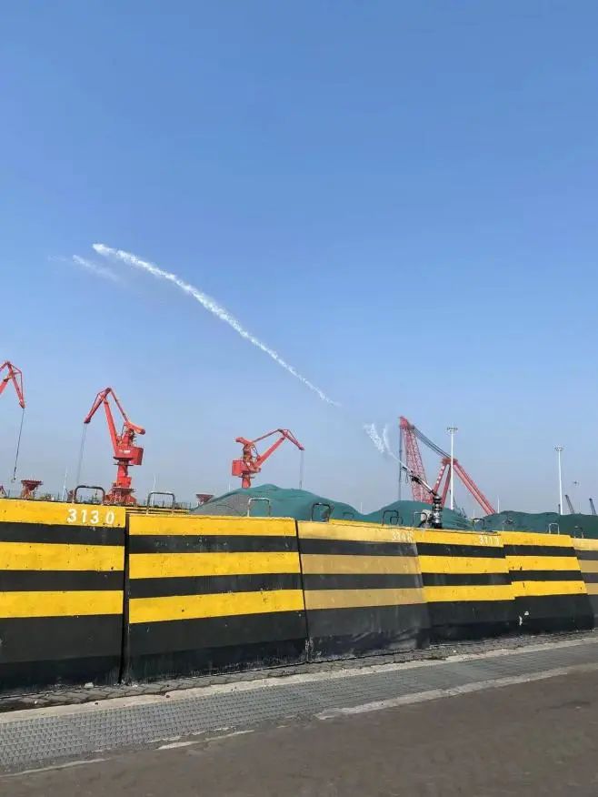 疫情形勢依然嚴峻,響水港區在抓好疫情防控的同時不放松綠色生態港口建設。為提高噴淋系統的噴射覆蓋區域,公司對噴淋設施的噴槍頭進行改造,由原來的水柱噴射改為扇形噴射,改造完成之后將大幅度提高噴淋面積。此外,港區防風網正在建設當中,待防風網建成投入使用后,將進一步提高響水港區場地粉塵治理水平。
