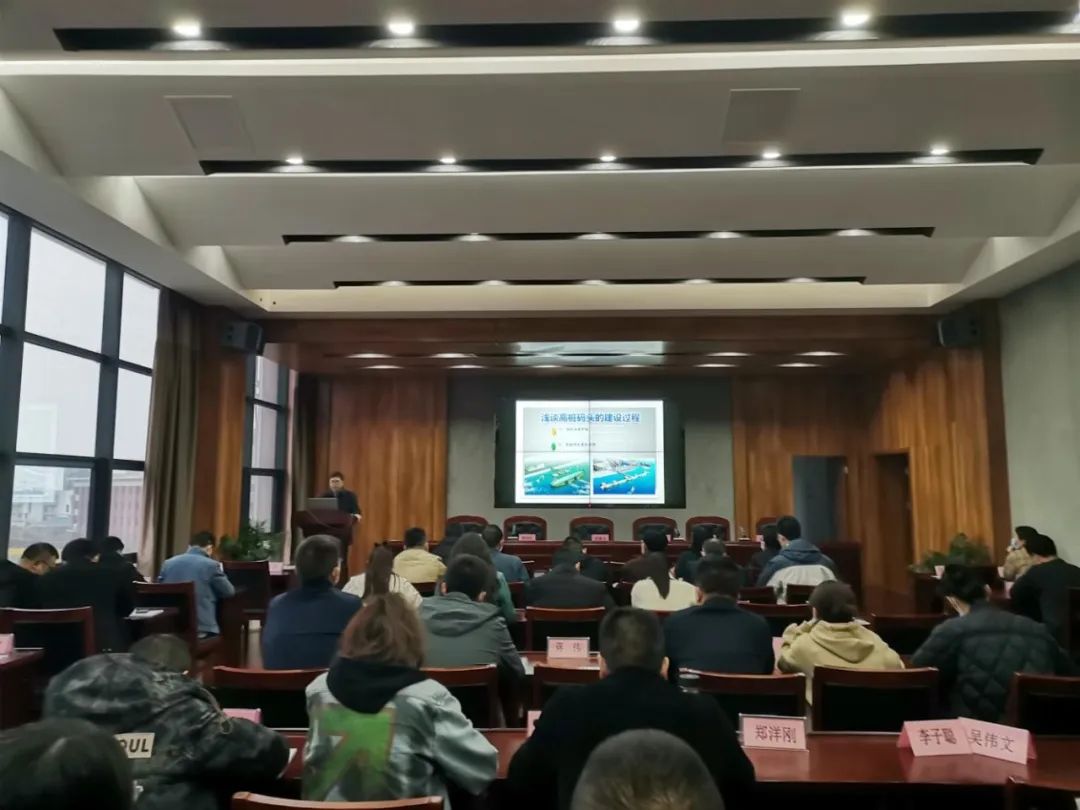 “業(yè)務(wù)大講堂”由港區(qū)相關(guān)負(fù)責(zé)同志進(jìn)行主講,他以《淺談高樁碼頭建設(shè)過程》為題,結(jié)合響水港區(qū)小蟒牛作業(yè)區(qū)碼頭二期工程(4#、5#泊位)項(xiàng)目建設(shè)的實(shí)際情況,圍繞岸坡挖泥施工、灌注樁施工、水上沉樁施工、現(xiàn)澆樁帽施工、預(yù)制構(gòu)件施工及安裝等方面內(nèi)容,通過文字、圖片、視頻相結(jié)合的方式,深入淺出地為機(jī)關(guān)干部職工作了系統(tǒng)地講解,內(nèi)容豐富,干貨滿滿。
