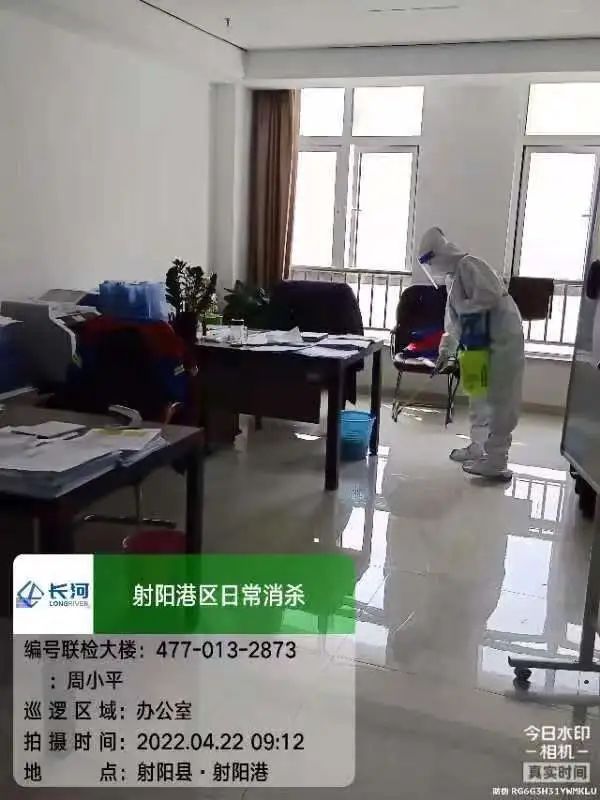 每日對港區重點區域進行消殺,辦公生活樓內每2小時消殺一次,港區門崗、碼頭、各項目工地定時消殺,確保環境安全。