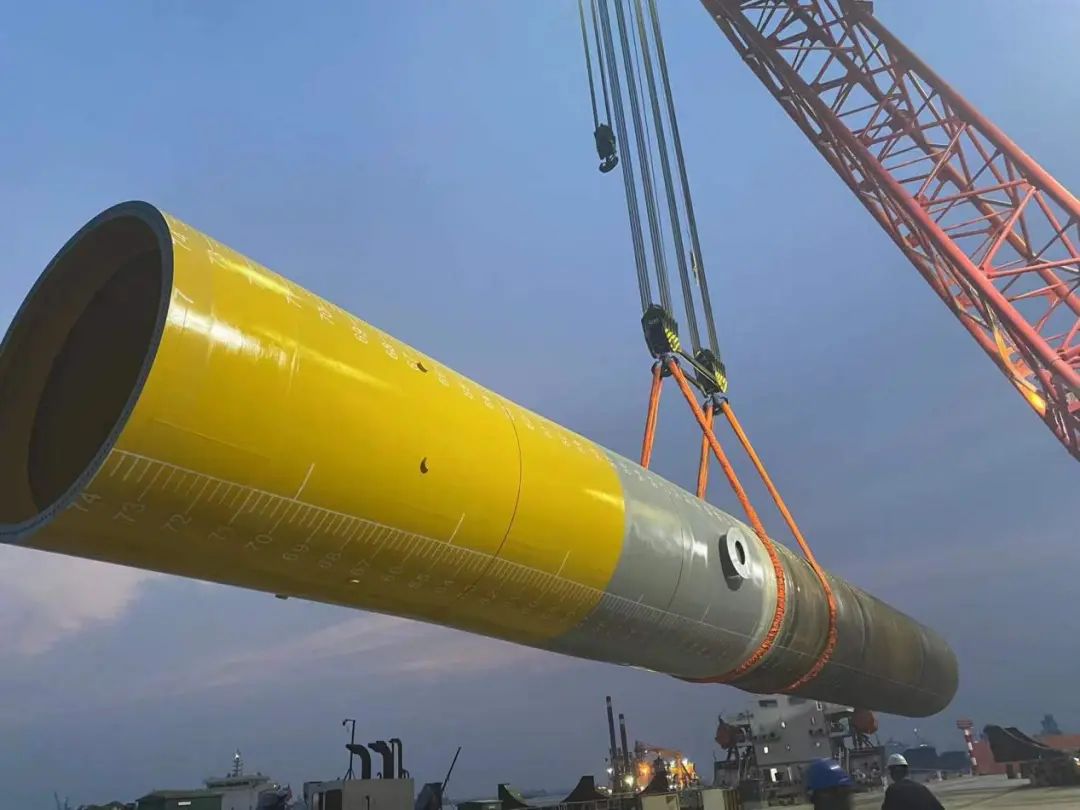破風斬浪 重件啟航丨響水港區公用重件碼頭首件風電樁基裝船運輸順利完成