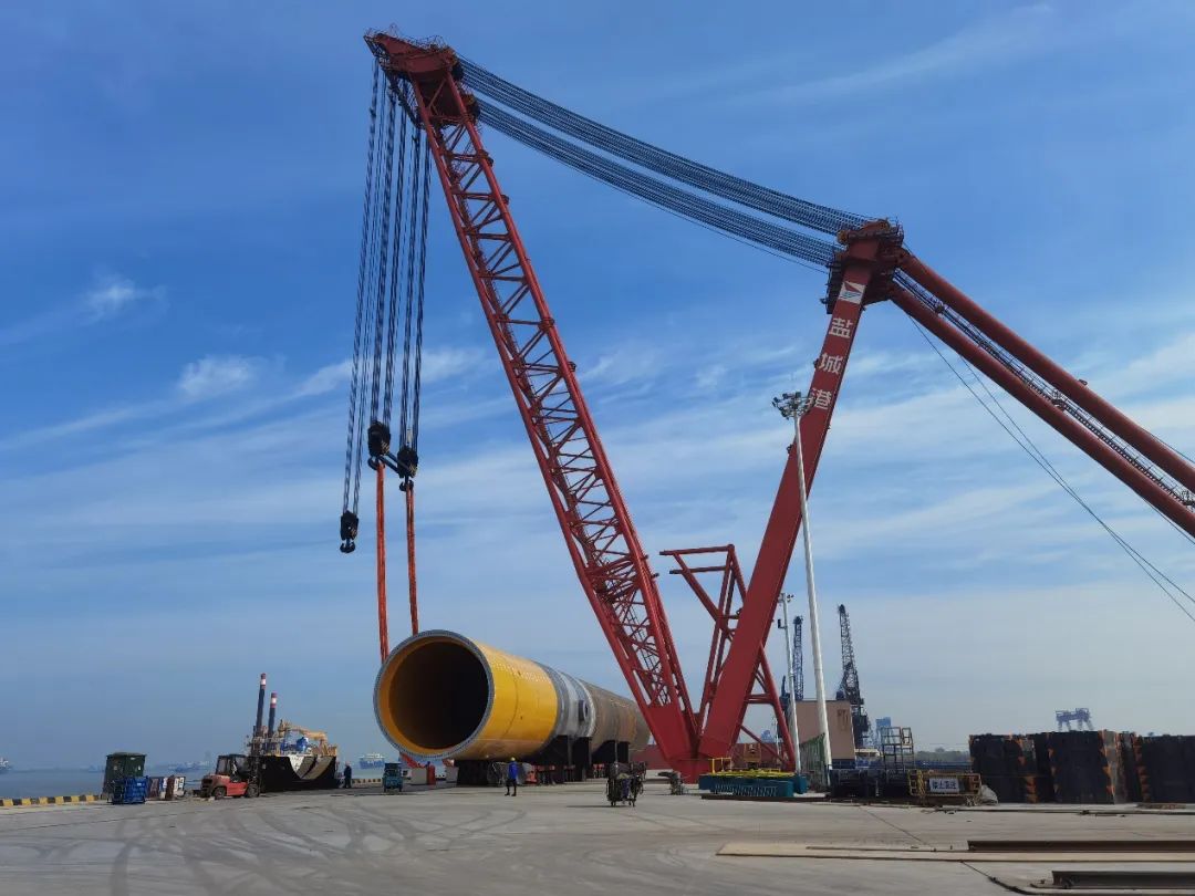 此次1055.1噸的風電樁基組裝及出運項目的實施,是響水港區重件碼頭首次進行的重件裝船運輸,標志著公用重件碼頭正式揚帆起航,為響水港區的運營和吞吐量增添了濃墨重彩的一筆,也為響水港區的高質量發展增添了新的動力。