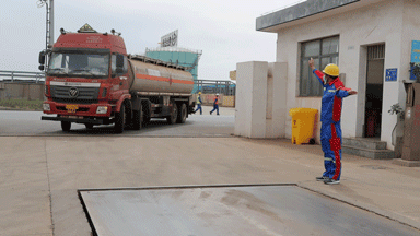 伴隨著手勢,指揮員有條不紊地指揮著車輛