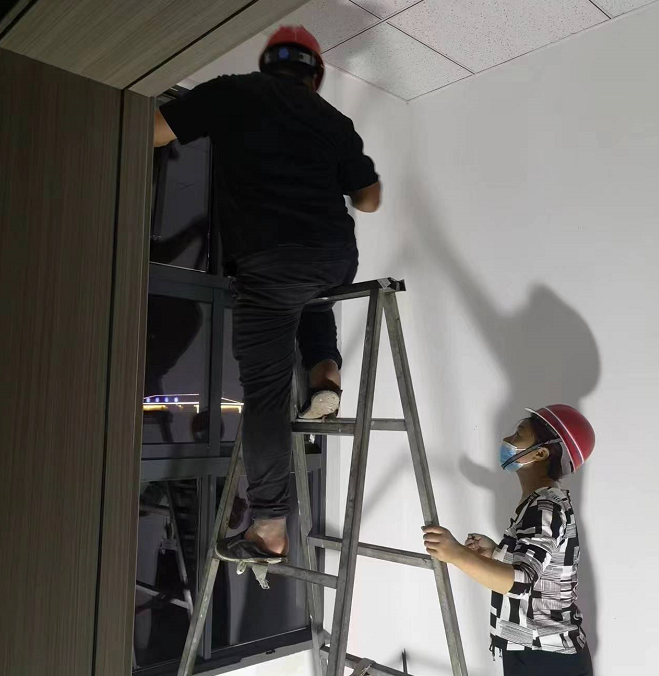 在施工期間,陸港集團工程建設公司多次召開協調會議推進工程進度,明確工期時限,細化責任分工,將每個施工工序精確到日,并選派精干力量現場監督指導。施工過程中,現場施工人員克服眾多不利因素。尤其是今年項目開工后,疫情形勢嚴峻,造成工人到崗困難、物流不暢、外購件滯后等困難,我公司項目人員持續跟進外購件的采購到貨進度,并根據實際情況調整施工項目整體部署,優化施工方案。特別是在4月上旬的疫情靜態管控期間,該工程更是由于疫情停工9天,復工后施工人員爭分奪秒、不舍晝夜的搶工期、趕進度。5月初項目部進入“白+黑”施工模式,白天建筑外墻粉刷,晚上室內照明線路布線調試,三個安全員輪班監控,確保現場施工安全。最終不僅高質量的提前完工通過竣工驗收,更主動幫水上服務區優化圖紙上未標明的水電線路管道走向,受到業主單位的一致好評。