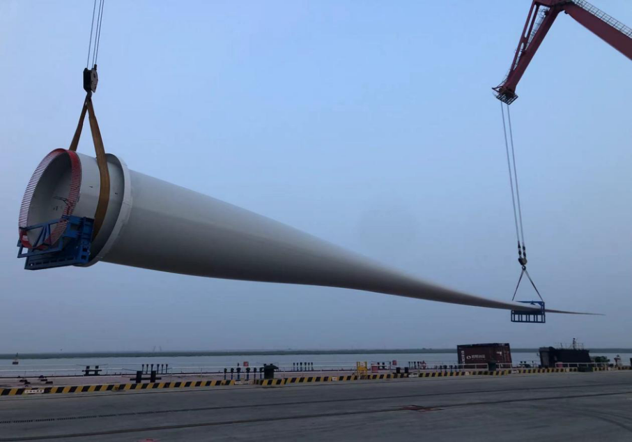 6月16日,射陽港區(qū)順利完成了首船107米風(fēng)電葉片的裝卸作業(yè)工作,這是中國近海岸風(fēng)力發(fā)電場(chǎng)第一套107米發(fā)電機(jī)組葉片,也是射陽港區(qū)有史以來裝卸作業(yè)的最長風(fēng)電葉片,再次刷新了射陽港區(qū)風(fēng)電葉片吊裝紀(jì)錄,標(biāo)志著射陽港區(qū)成功躋身百米以上級(jí)風(fēng)電葉片發(fā)運(yùn)港口行列。這次成功裝卸,創(chuàng)造了鹽城港裝卸風(fēng)電葉片長度新紀(jì)錄,向鹽城港集團(tuán)成立兩周年獻(xiàn)上了一份厚禮。