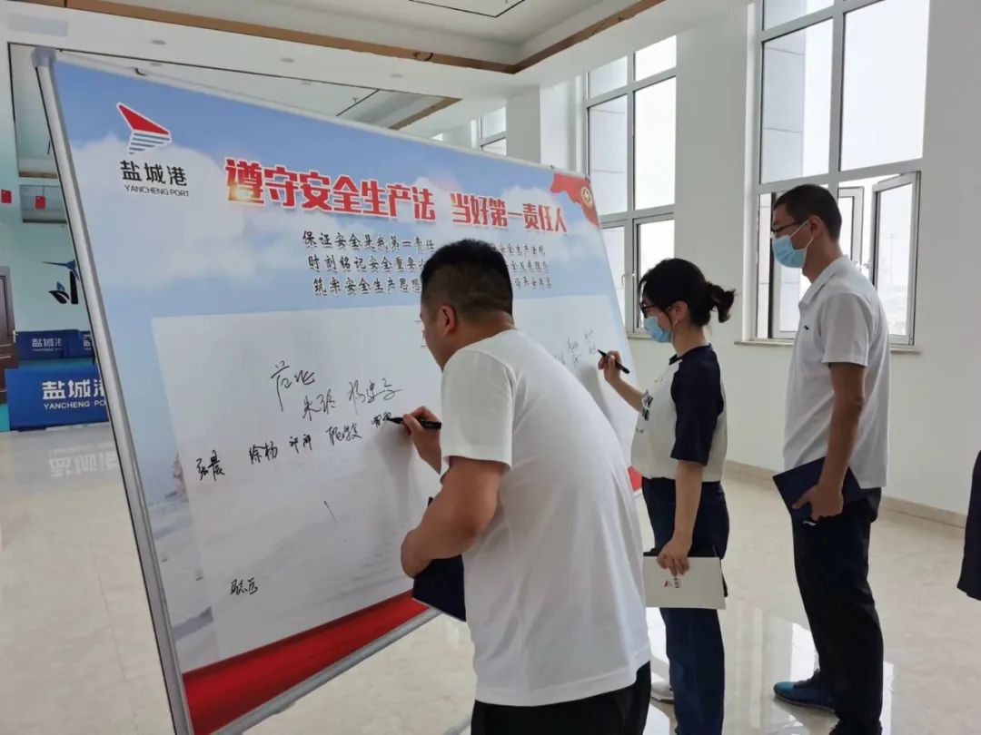 “我宣誓,保證安全是我第一責任,嚴格遵守安全生產法規;時刻銘記安全重要論述,忠實踐行安全發展理念;筑牢安全生產思想防線,堅決捍衛和諧平安港區。”在擲地有聲的宣誓聲中,射陽港區第一時間全面啟動安全生產月各項活動,先后開展了專題宣講,并邀請相關專家分別開展安全法解讀和危險作業安全管理培訓。