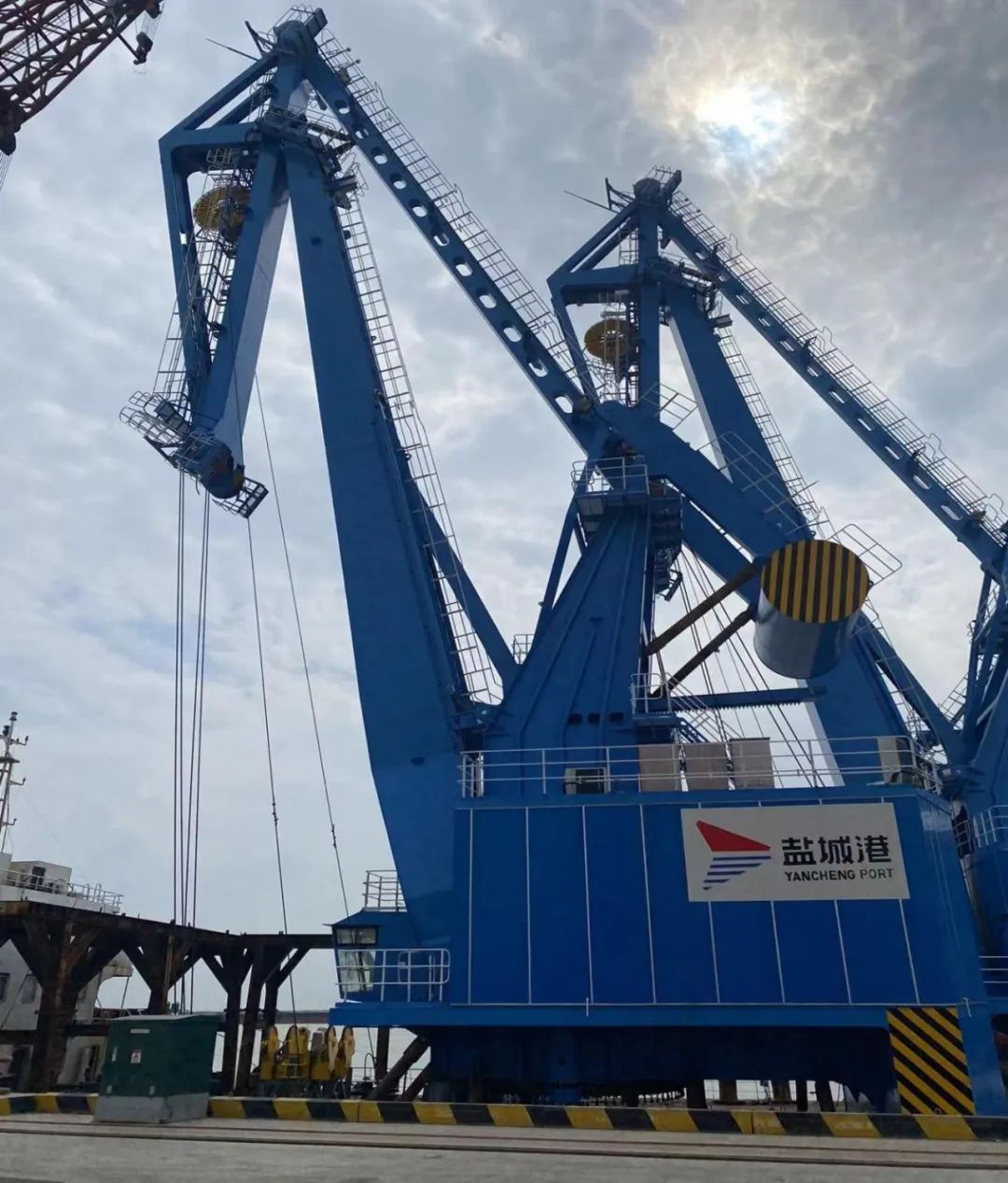 據(jù)悉,本次抵港門機為2臺40-43門座式起重機,由上海振華重工為小蟒牛作業(yè)區(qū)量身定制,具有吊運噸位高、抓取距離遠、故障率低等特點,可搭配抓斗、吊鉤、吸盤等多種吊具,靈活切換作業(yè)模式,操作性能強,作業(yè)效能高。為確保兩臺門機及時安全落戶響水港區(qū),集團設(shè)備技術(shù)部統(tǒng)籌協(xié)調(diào),響水港區(qū)生產(chǎn)經(jīng)營部、投資發(fā)展部積極配合,根據(jù)航道情況及靠泊條件,采用門架和轉(zhuǎn)盤分離的方式運輸,大輪靠泊后先用浮吊將門架部分吊裝上岸落軌后,再將轉(zhuǎn)盤部分吊至門架上筒體處通過高強度螺栓連接的方式完成整機的總裝。后續(xù)這兩臺門機將進入調(diào)試階段,投產(chǎn)指日可待。