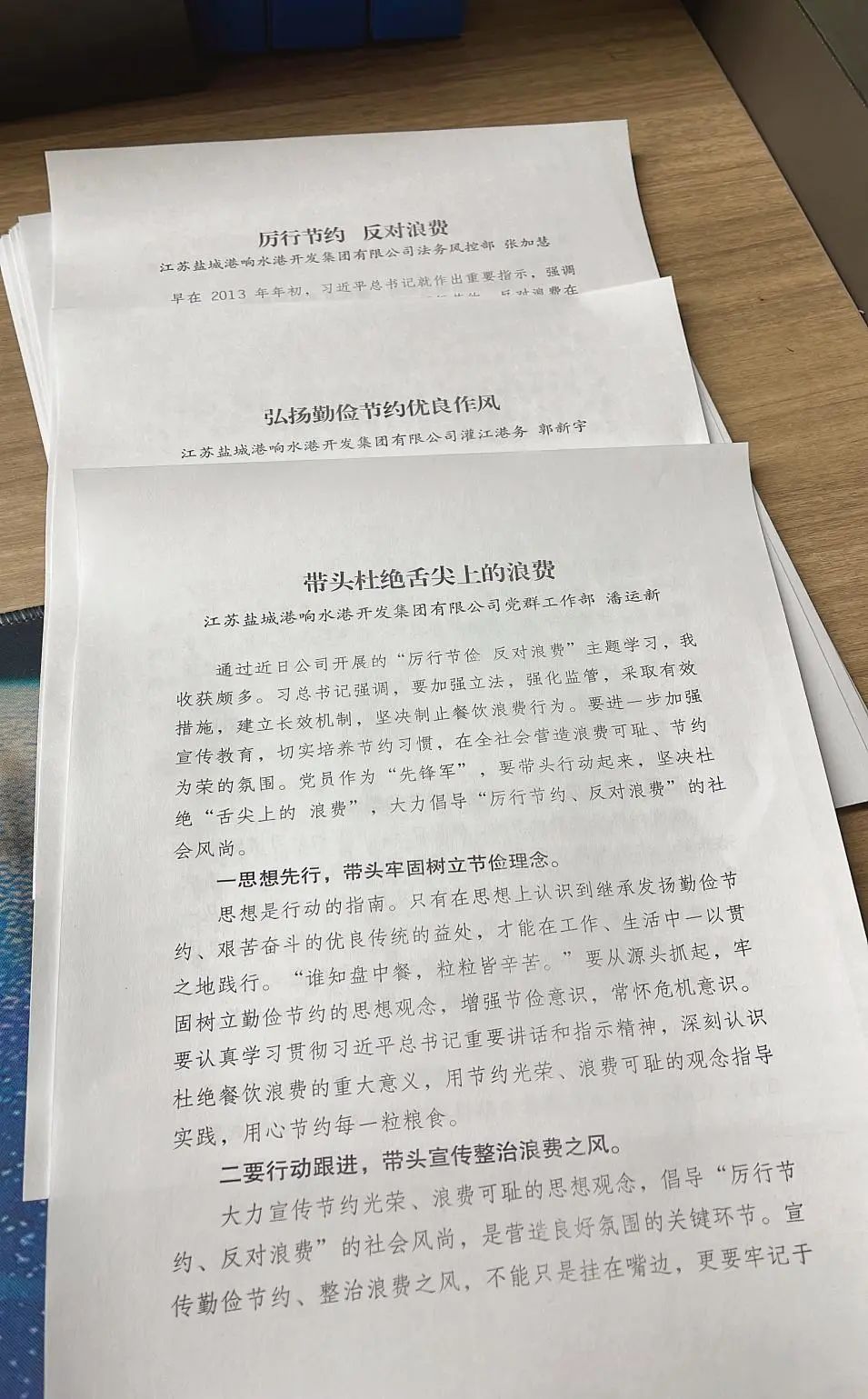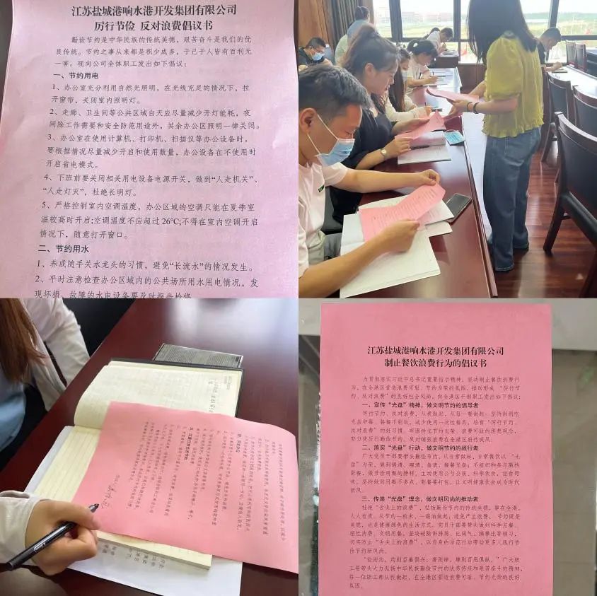 響水港區(qū)發(fā)起“厲行節(jié)約反對浪費”倡議活動,每個人在倡議書上簽字,爭做帶頭的倡議者,爭做勤儉節(jié)約的傳播者、實踐者、監(jiān)督者。此次倡議活動號召全港區(qū)職工積極行動,從自身做起,從點滴做起。