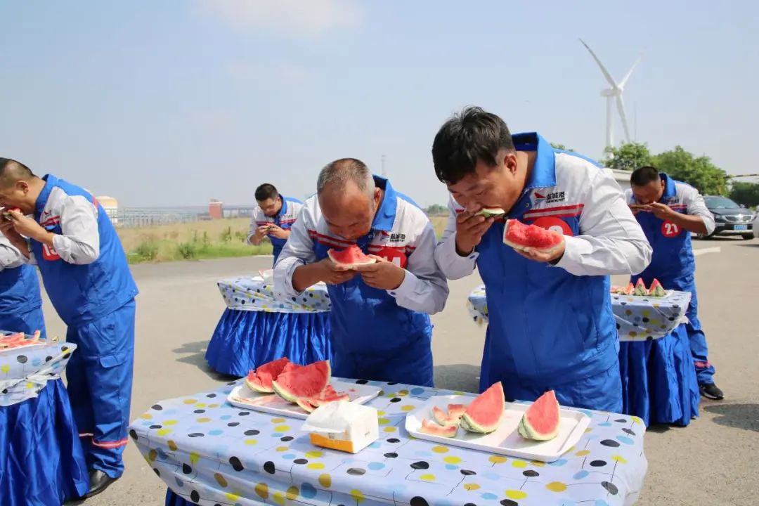 情暖海港第十一彈丨鹽城港大豐港區開展“瓜分甜蜜清涼一夏”吃西瓜比賽