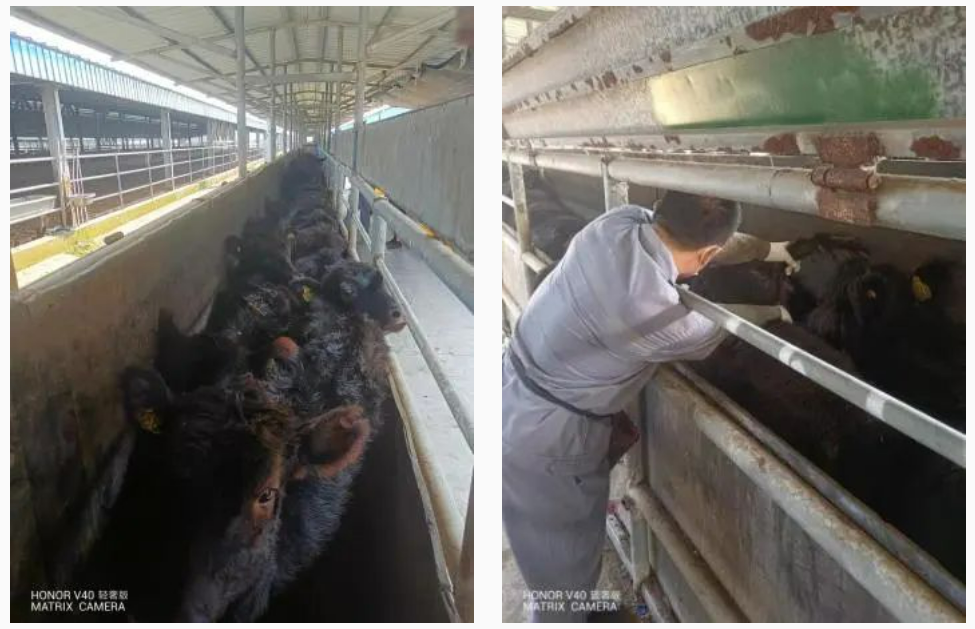 血樣采集是確保檢測工作準確無誤的基礎,更是嚴防境外動物傳染病傳入國門的第一道防線。為保證采血檢疫工作的順利完成,駐場海關人員、及牧業公司駐場人員在炎熱高溫的天氣下,穿著隔離防護衣,佩戴面罩、口罩、手套持續工作。每天采集1200-1400管血樣,確保在96小時內完成所有牛只血樣采集工作。