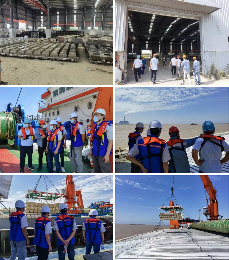 本次“突擊式”檢查,鹽北區域分公司相關管理人員分別前往射陽預制件工廠和防波堤施工現場,對聯鎖塊從工廠預制成塊到施工現場鋪排船施工全過程進行檢查。管理人員對于工程的關鍵工序和隱蔽部位實行跟蹤管理,確保工程質量處于受控狀態。