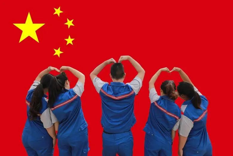 在鮮紅旗幟的映襯下
