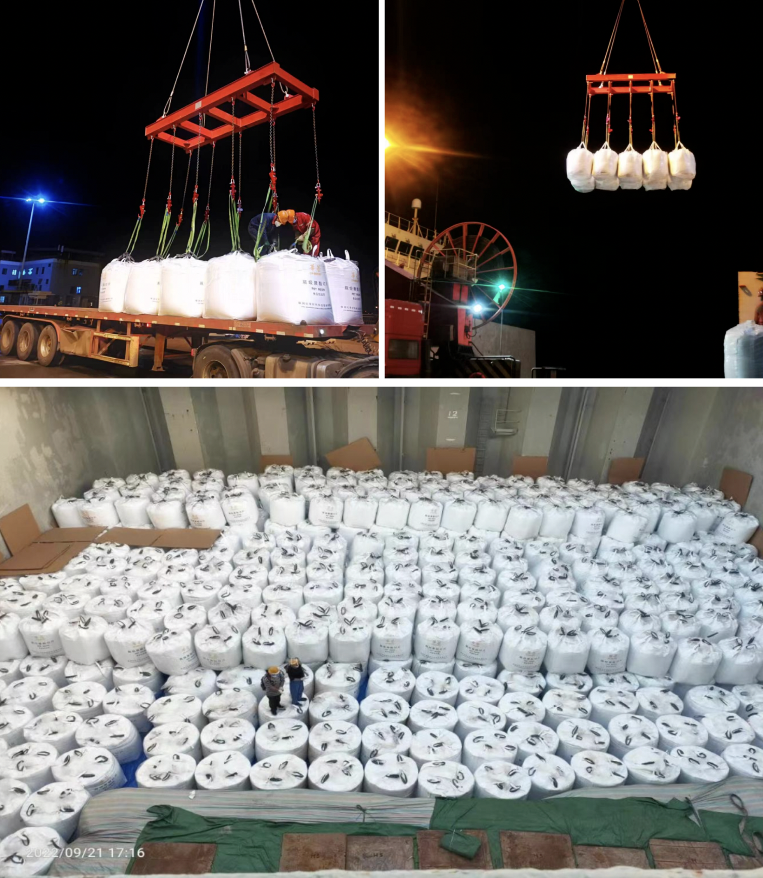 聚酯切片通常指聚合生產得到的聚酯原料,廣泛用于生產各種飲料、純凈水、天然礦泉水、調味品的包裝生產,是一種非常重要的食品級資源。在后續中轉過程中,該貨種對場地環境要求較高。為安全、高效接裝“伯樂”輪,滿足客戶多樣化需求,通用碼頭分公司超前謀劃、密切協作,有針對性地制定作業方案,保障了貨物輸送全程潔凈無塵、高效順暢。