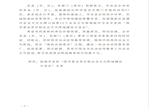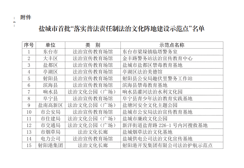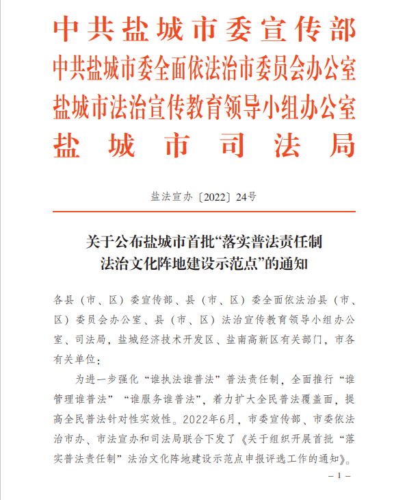 近期,由鹽城市委宣傳部、市委依法治市辦、市法宣辦、司法局4個(gè)部門(mén)單位發(fā)布關(guān)于公布鹽城市首批“落實(shí)普法責(zé)任制法治文化陣地建設(shè)示范點(diǎn)”的通知,江蘇鹽城港射陽(yáng)港開(kāi)發(fā)集團(tuán)有限公司榮獲相關(guān)稱(chēng)號(hào)。