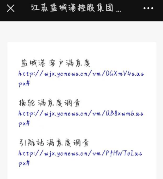 1.鹽城港客戶滿意度問卷調查鏈接: