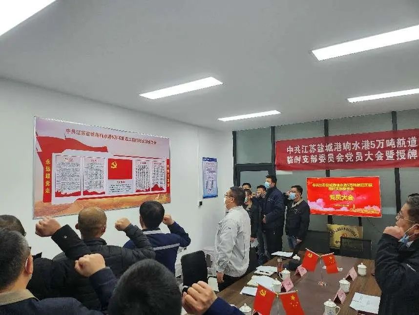 把黨旗插在項目建設第一線丨響水港5萬噸航道工程臨時黨支部正式成立