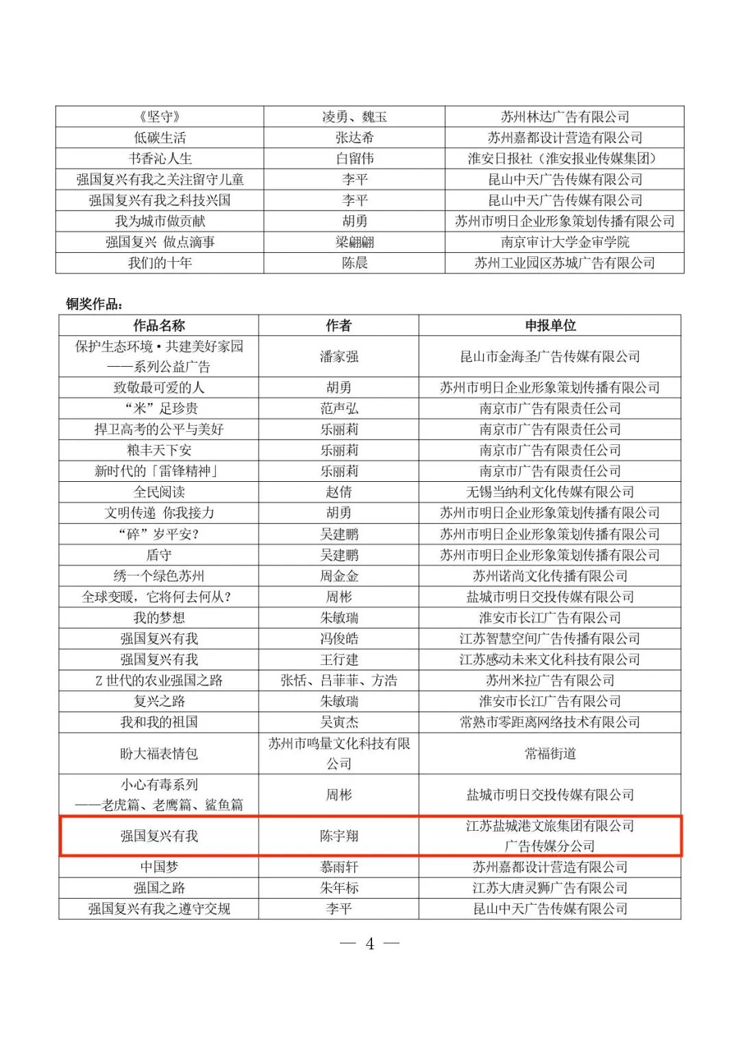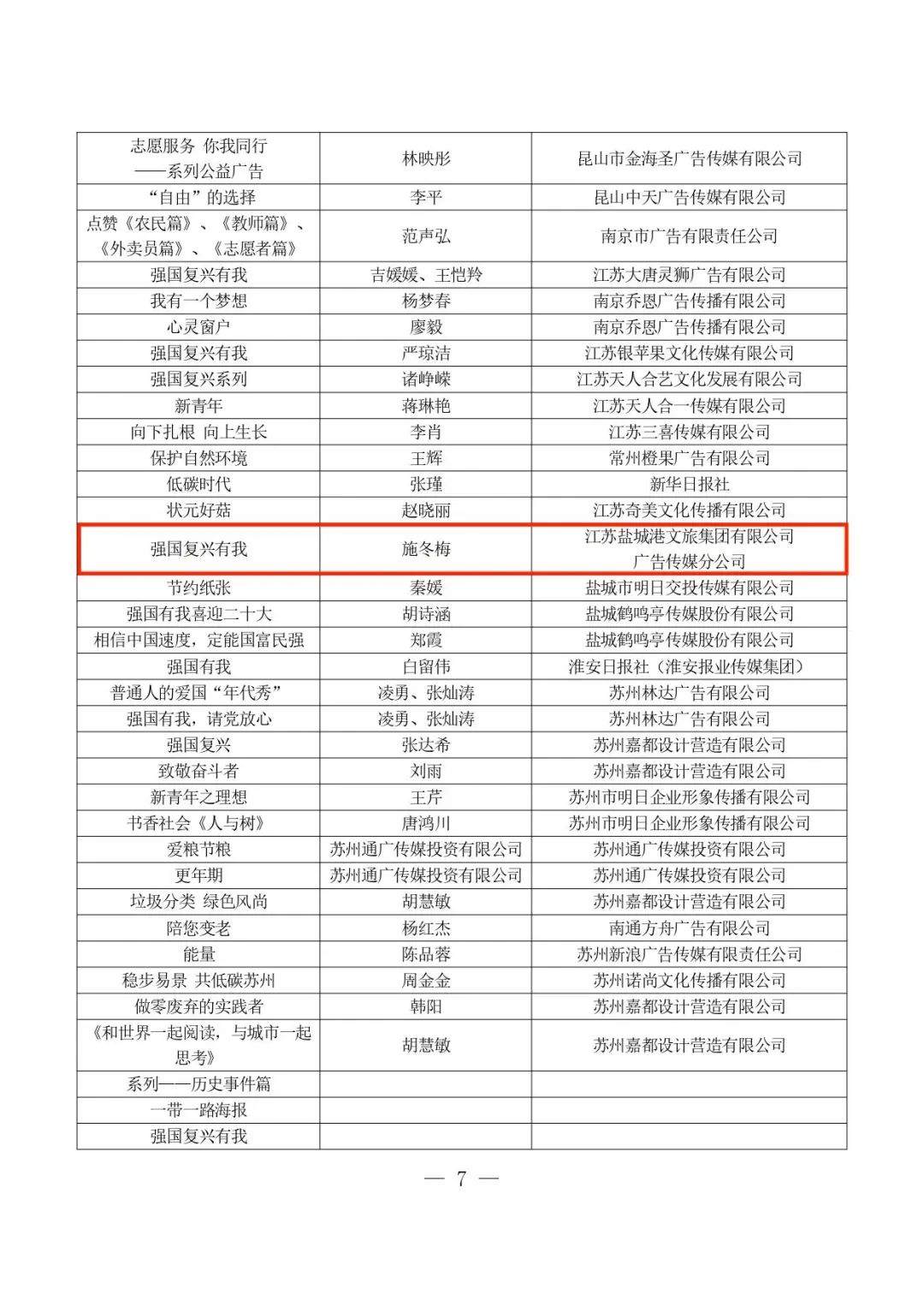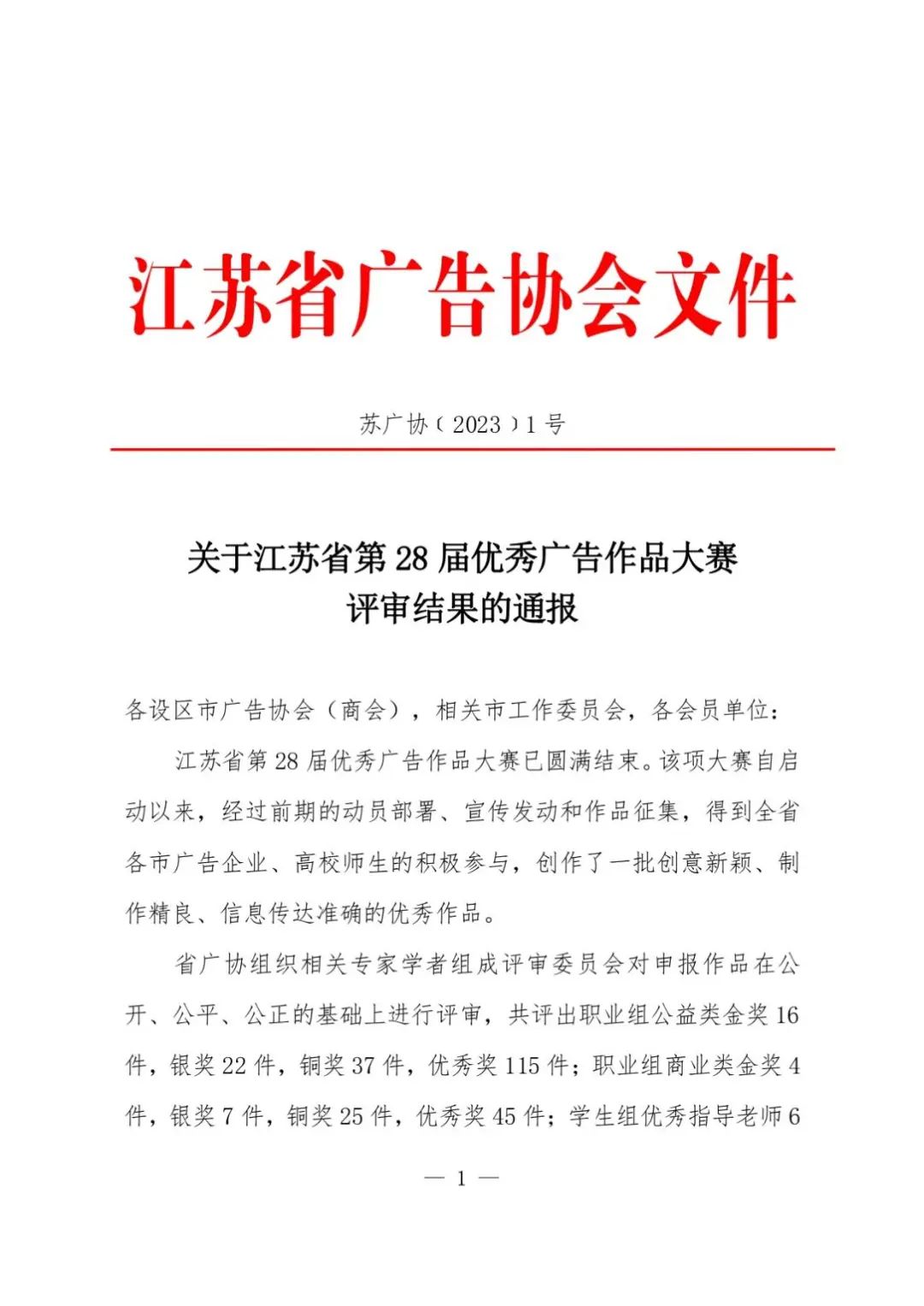 據(jù)悉,“江蘇省優(yōu)秀廣告作品大賽”由江蘇省廣告協(xié)會主辦,迄今為止已舉辦28屆,吸引了省內(nèi)數(shù)百家公司參與,每屆賽事均有數(shù)千個作品參加比賽。本屆大賽,文旅集團廣告?zhèn)髅椒止緫{借過硬的專業(yè)實力榮獲職業(yè)組公益類作品銅獎和職業(yè)組公益類作品優(yōu)秀獎。