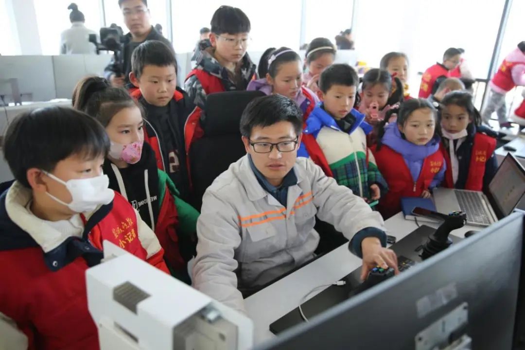 在現場講解員的帶領下,同學們整齊有序地排好隊伍,走進鹽城港大豐港區自動化集裝箱堆場中控室,“這些設備好先進啊,我從來沒見過這些‘大家伙’,真是太壯觀了?!薄爸灰p輕一撥就能抬起那么大的集裝箱柜,這也太酷了,長大后我也想到鹽城港操控這些先進的機器。”……在講解和參觀過程中,同學們表現出了濃烈的好奇心,尤其對鹽城港建成江蘇沿海地區首個自動化集裝箱堆場贊嘆不已,并圍繞5G、大數據、云計算等方面,踴躍提出問題,講解員用生動形象的表達方式一一給予解答,讓同學們親身感受到了“科技賦能、創新驅動”為港口帶來的深刻變化,進一步激發出他們對學習科學知識、探索未知領域的極大興趣。