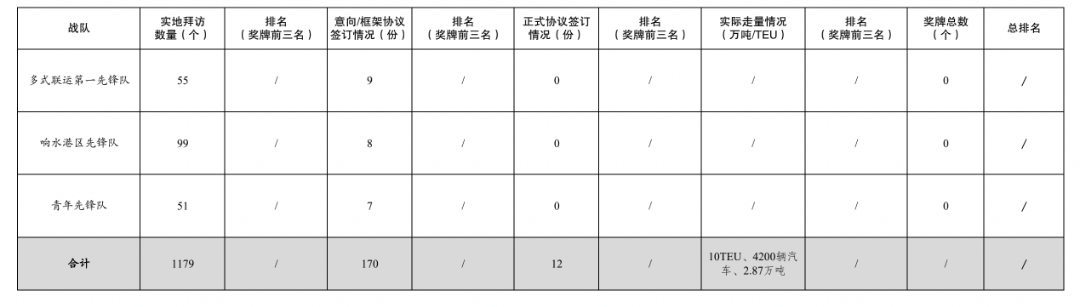 活動(dòng)開展以來,累計(jì)拜訪客戶數(shù)量1179家,簽訂意向/框架協(xié)議數(shù)量170份,簽訂正式協(xié)議12份,實(shí)際走量10TEU、4200輛汽車、2.87萬噸。