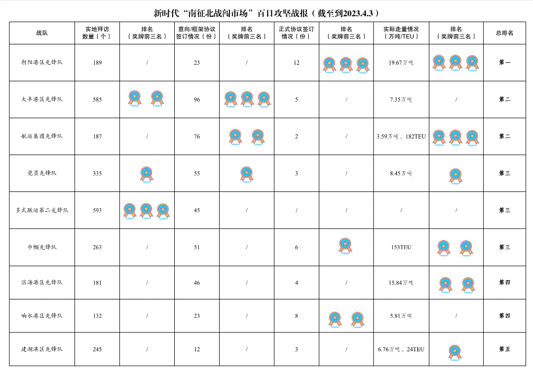活動開展以來,累計拜訪客戶數量3294家,簽訂意向/框架協議數量473份,簽訂正式協議48份,實際走量359TEU、76.25萬噸。
