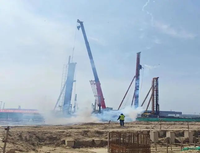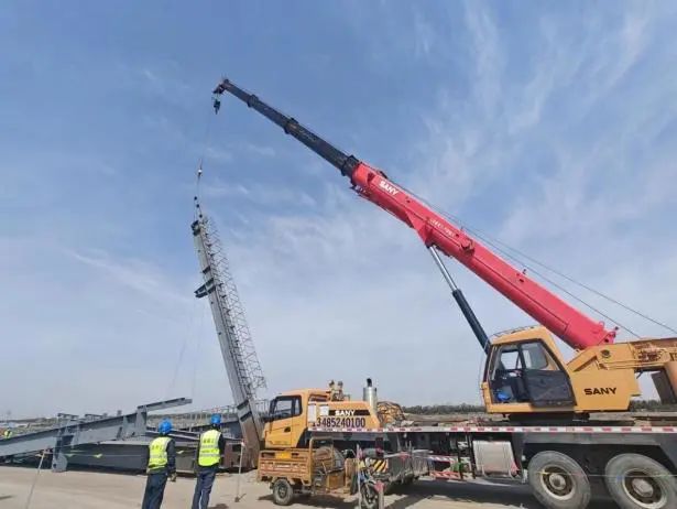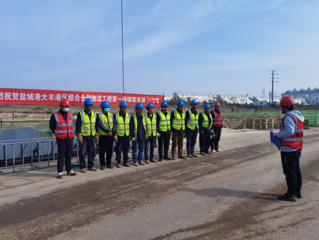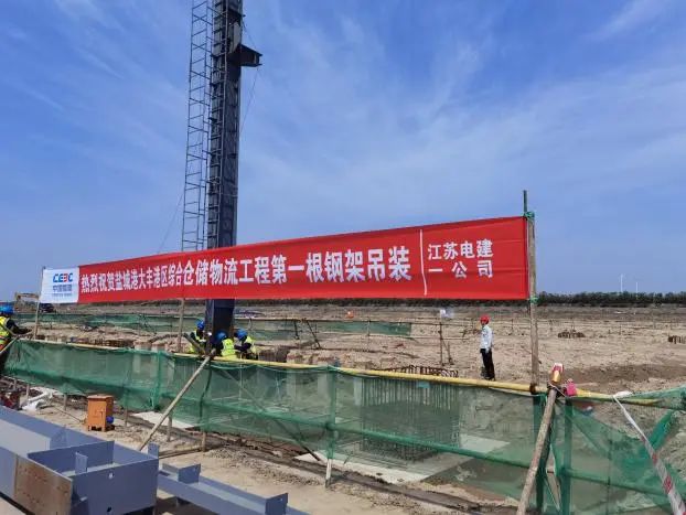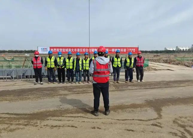 在機械及司號聲中,第一根預制鋼架被徐徐吊起,穩(wěn)穩(wěn)地安裝在承臺基礎上,由項目咨詢公司代管的大豐港綜合倉儲物流項目鋼結構工程首吊成功完成,標志著該項目正式進入安裝施工階段,開啟建設新篇章。