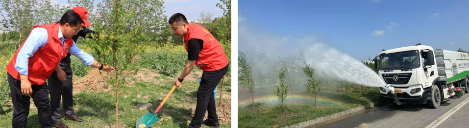 活動現(xiàn)場,大家三人一組,揮鍬挖坑、扶苗填土、提水澆灌,迎著春風(fēng)干勁十足,合力栽下一株株樹苗。經(jīng)過一番辛勤勞動,100余株新栽種的水杉迎風(fēng)挺立、錯落有致,點綴出一派生機盎然的春日景象。